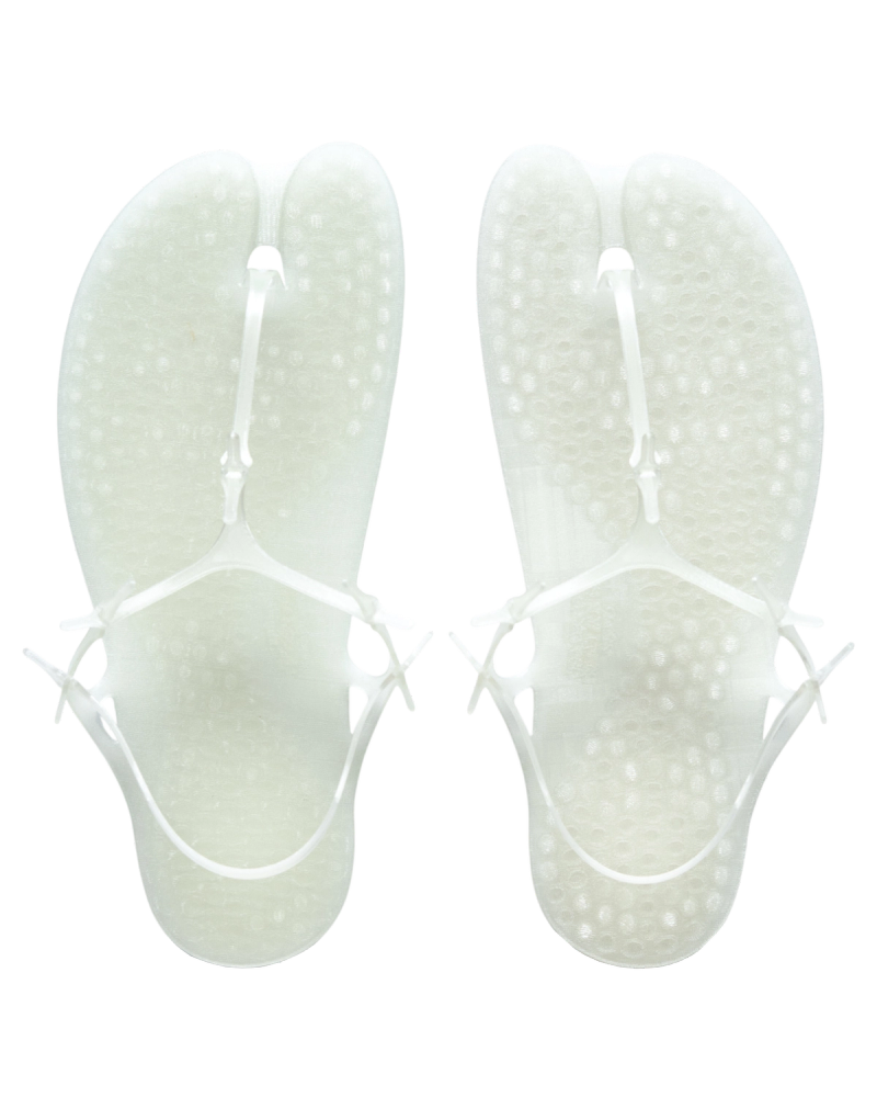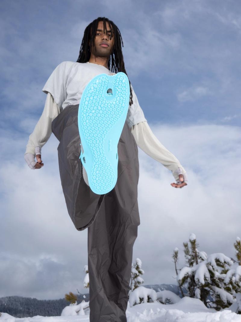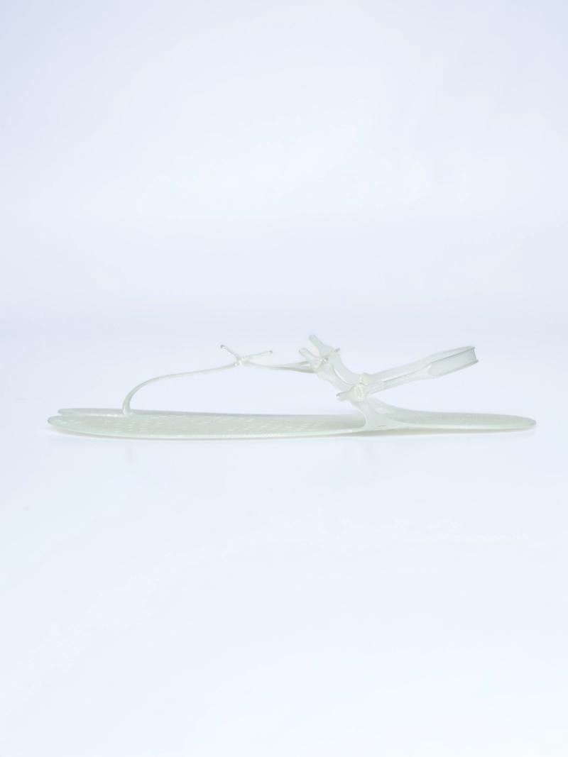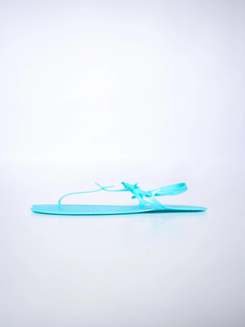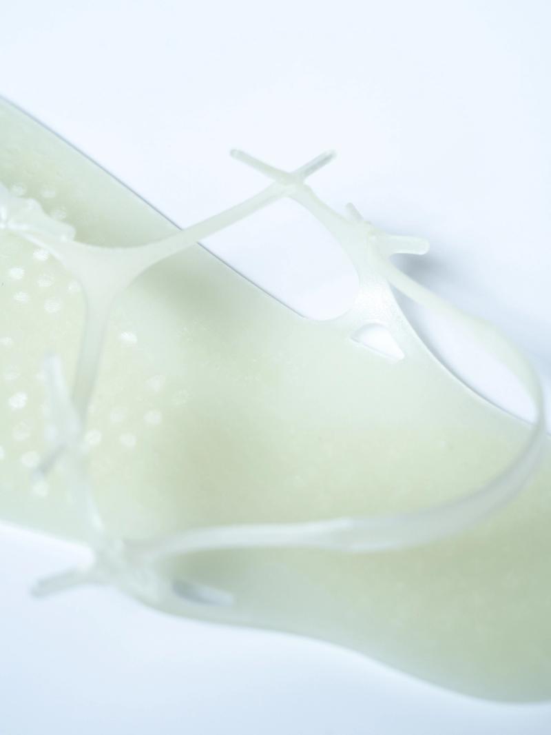 Each pair is 3D printed in Portland, Oregon, using a process that eliminates cutting and gluing, reducing waste and keeping production local. Each sandal has an anchor tab assembly system, with 4-5 (depending on size) connection points, which need to be put together by the wearer before use. Simple, functional, and made with just one material.