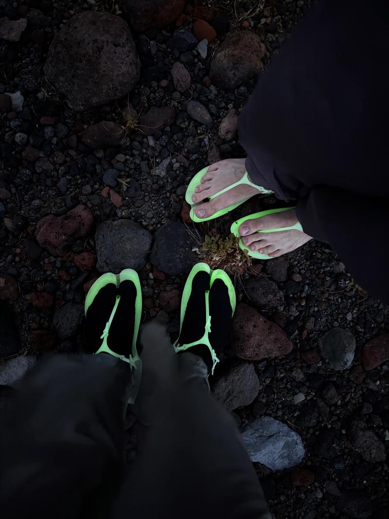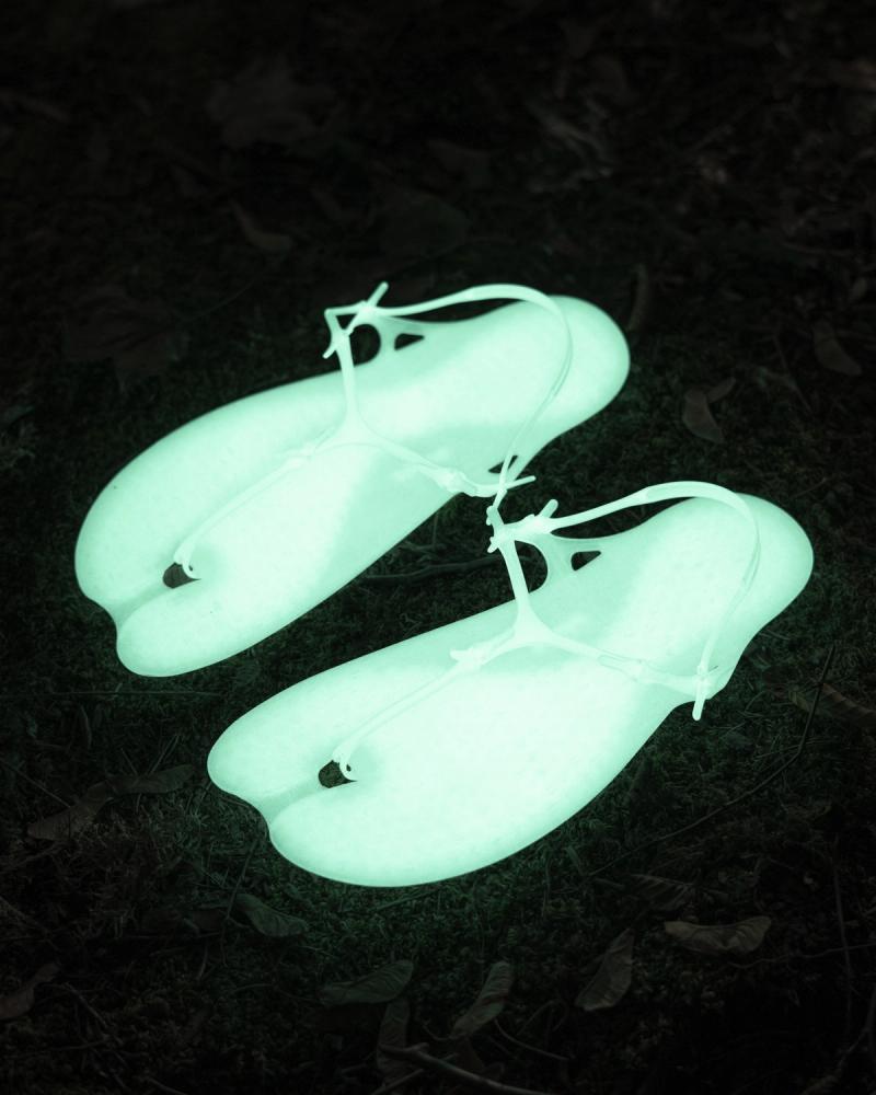 A lightweight, 3D-printed sandal for camp, river crossings, and travel. Designed to be easy to pack, easy to wear, and quick to dry. The entire sandal is printed from flexible TPU, giving it a comfortable feel underfoot and solid grip on wet or uneven ground. The sandals are glow in the dark and easy to find at dark time.