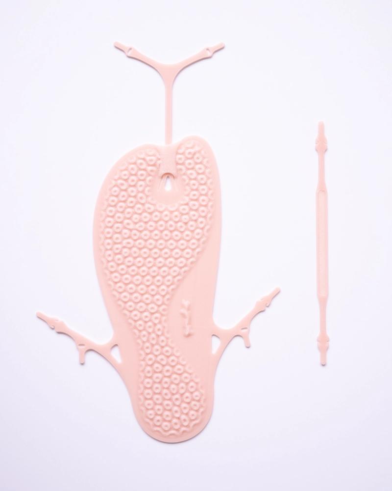 Each pair is 3D printed in Portland, Oregon, using a process that eliminates cutting and gluing, reducing waste and keeping production local. Each sandal has an anchor tab assembly system, with 4-5 (depending on size) connection points, which need to be put together by the wearer before use. Simple, functional, and made with just one material.