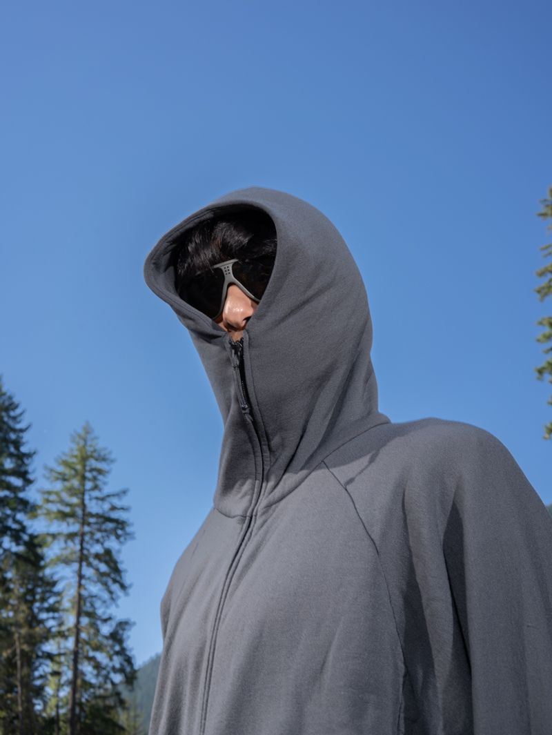 The gnuhr power hoodie is classic simplicity and function. Made from Polartec® Power Wool™, it’s light, warm, and durable. It has a relaxed fit, a hidden pleated pocket and hidden thumb hole integrated into the cuff, it's a great mid-layer for any outdoor activities or everyday wear. For a more textured casual look the power hoodie has been rinse washed and cut with a relaxed boxy fit, more like a traditional hoodie. Therefore we recommend sizing down if you're looking for a fit that's more snug. Minor updates to fit from the original Power Hoodie.