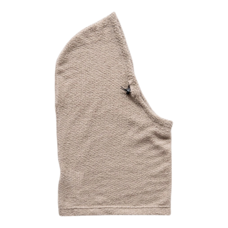 Kinda shaggy looking, weighs next to nothing. Ultralight, simple and minimal thermoregulation. For versatility, add a hood to any items in your kit. It's the Shag Hoodie without the body.