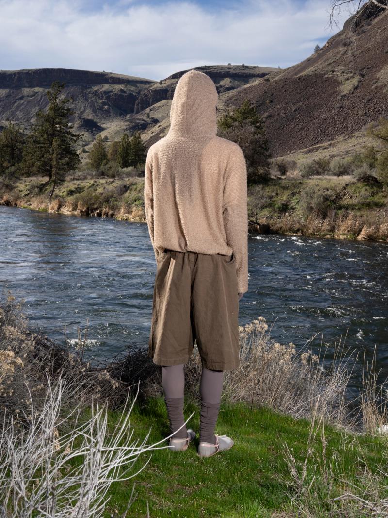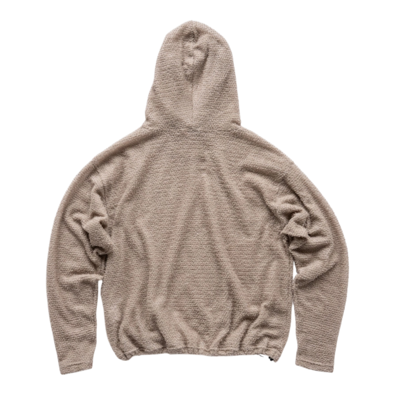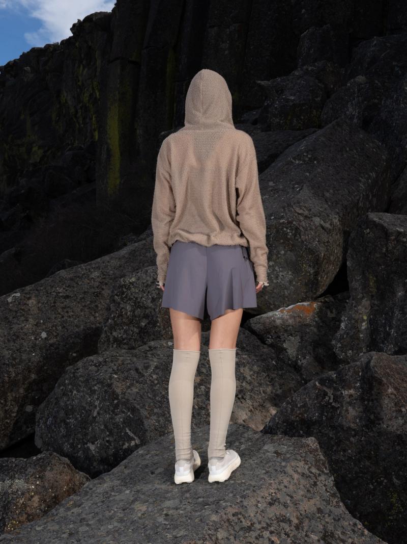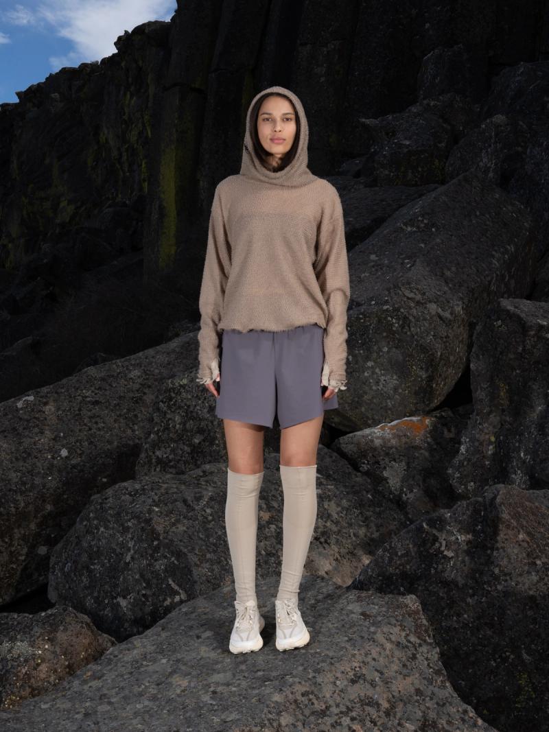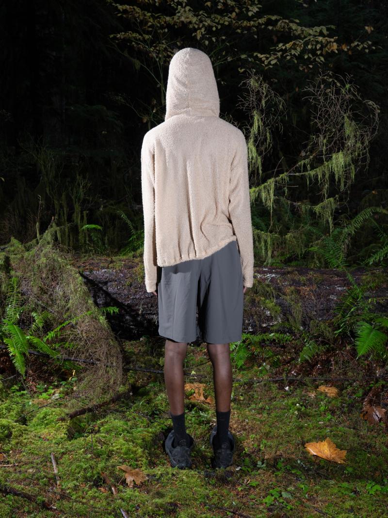 The Shag Hoodie v2.0 is cut for all-around comfort—for trail and life. Compared to the original version, the v2.0 features a boxier fit, similar to the Shag Sweater, for added versatility and ease of movement. Updates include the removal of the front pockets, prioritizing simplicity and reducing weight even further. The hood and hem adjustments have been upgraded with a new lock system, allowing for easier one-handed cord adjustment, and the hood offers a better cinch fit around the face for improved protection.