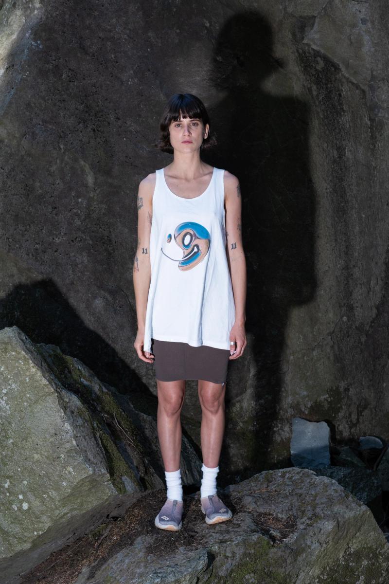 for simplicity's sake the tank is constructed with just two shoulder seams providing exceptional comfort. the fit is loose and boxy for versatility.