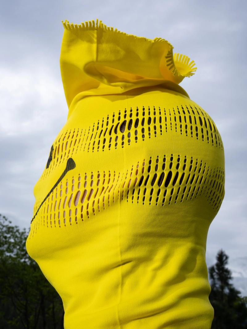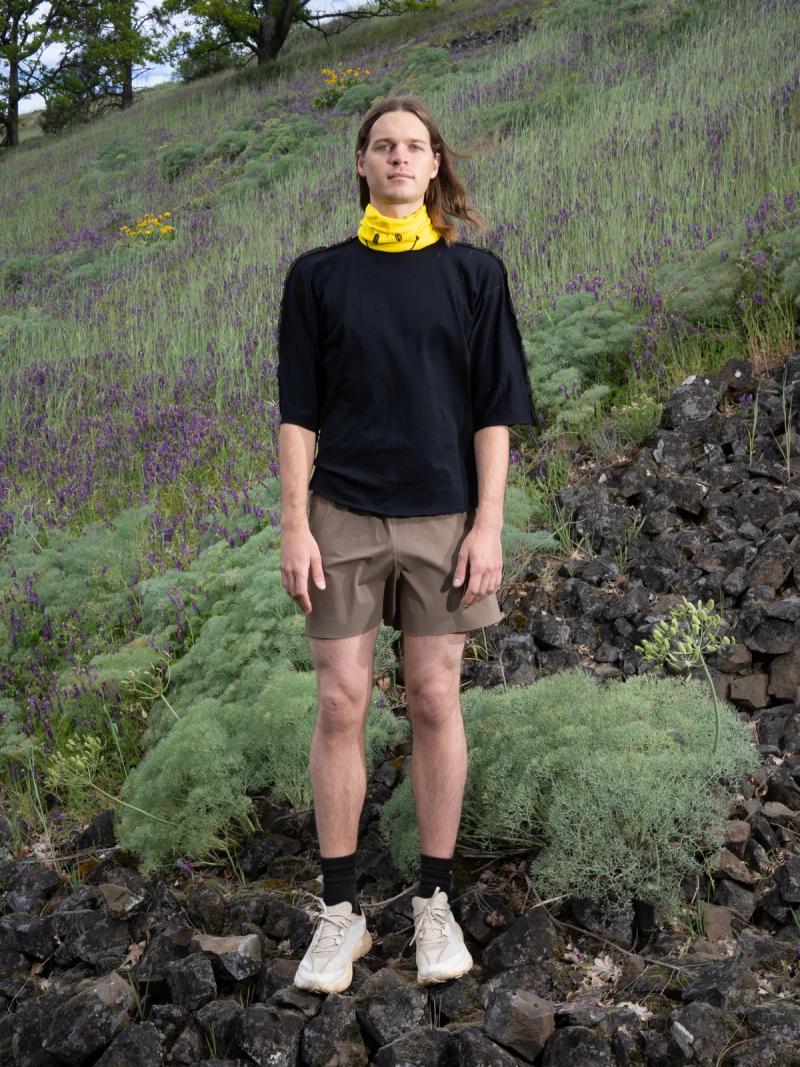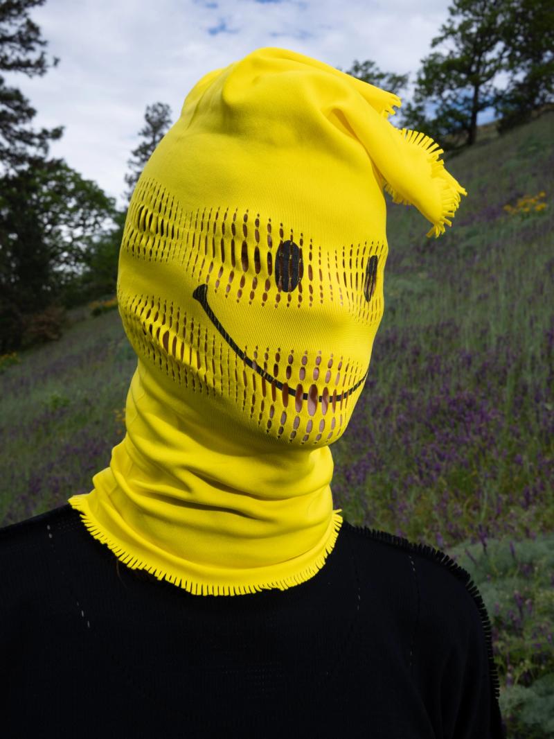 A neck gaiter (AKA snood, tube-scarf) that can be used in a multitude of ways: neck warmer, face cover, sun protection, hat, cuff, pillow case... Made from a high quality ultra stretchy knit with seamless construction for comfort. a perforation pattern is engineered directly into the knit, for the option of wearing directly over ones face while maintaining visibility and ventilation. The engineered warp knit seamless construction allows for a finished item to come straight out of the machine. Perforations go all the way around, can be worn in different ways, different weight, different fabric. Due to the nature of the warp knit, the end of the Warp Gaiter can be cut raw, which also adds to the simplicity and comfort.