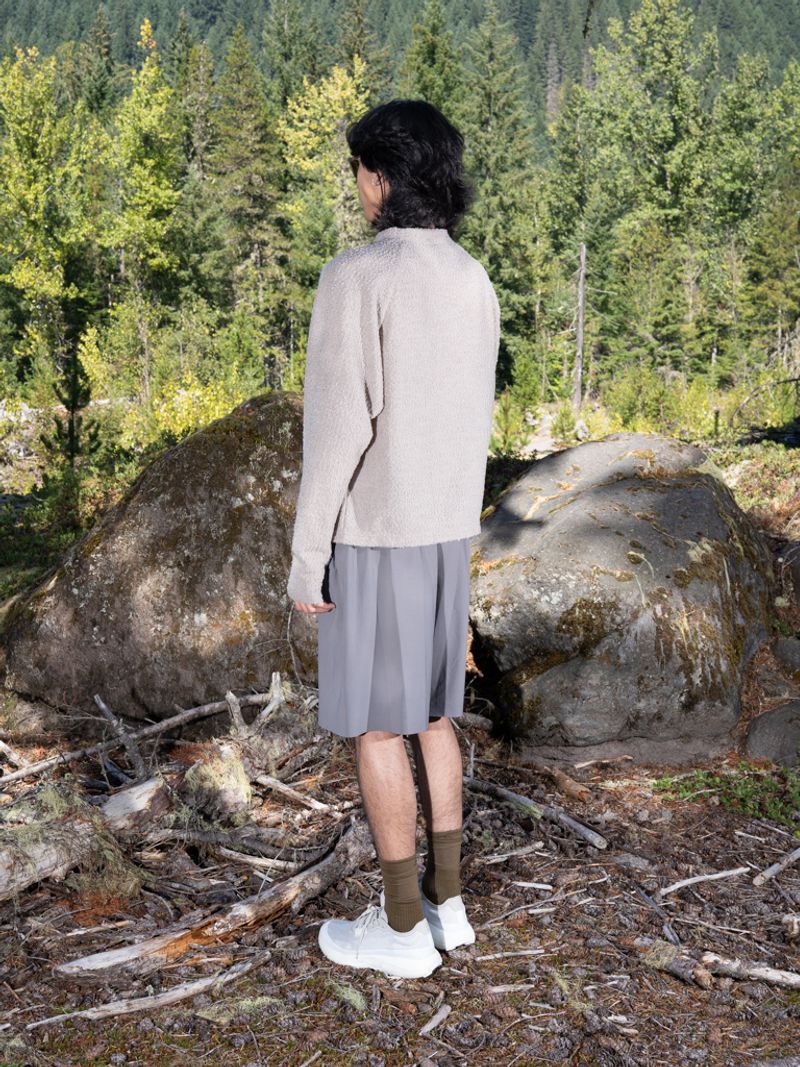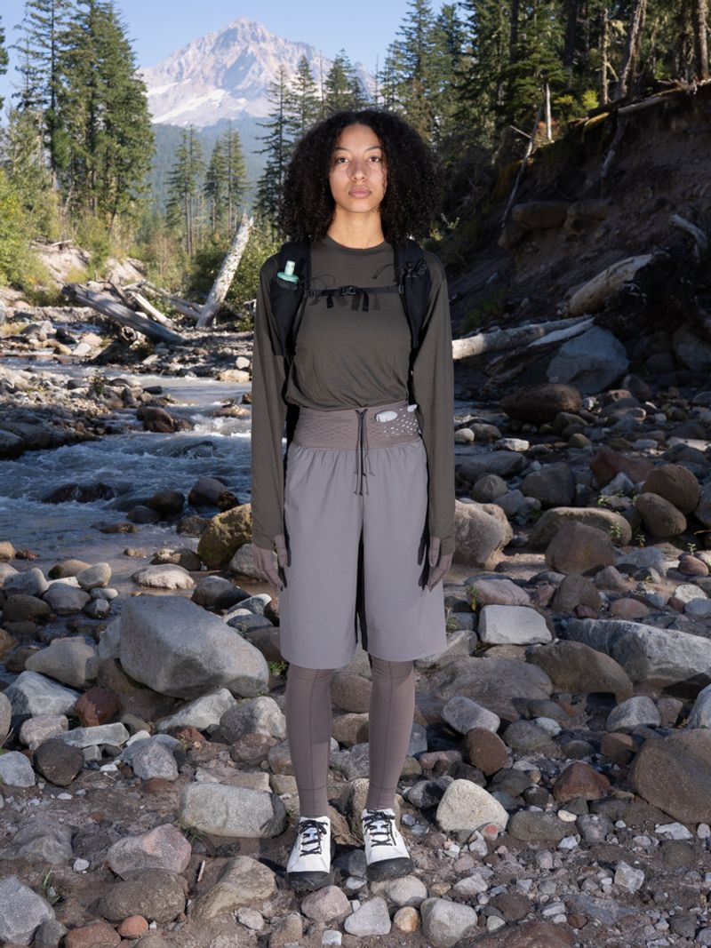 Ultimate comfort and utility with the Warp Short Long (25.5cm / 10"). Designed with the same thoughtful simplicity that defines all gnuhr products, these innovative shorts feature a warp-knit engineered pocket waistband. The waistband integrates six pockets (size 1-2 only has 4 pockets) directly into its structure, eliminating extra stitching and preserving elasticity and comfort. This means a high-stretch, high-recovery fit with pockets that can securely hold everything from an iPhone Max, soft water flask to a lip balm, ensuring you’re ready for any hike or trail run with no bounce. Smaller back pockets secure essentials like keys or AirPods, while a built-in tunnel for a drawstring adds extra security without added bulk and allows for loops for extra secure storage. The Warp Short Long also has two additional hand rest pockets for added everyday ease. The legs are crafted from a fine-gauge warp-knit nylon, offering a smooth, durable finish with a raw-cut hem for unparalleled comfort. Garment-dyed and packable, these versatile shorts are made with premium materials from Italy and Japan, and constructed in the USA, ensuring a perfect fit for all without unnecessary liners.
